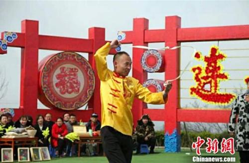 山西省面藝大師李飛正在進(jìn)行面食表演。受訪者供圖