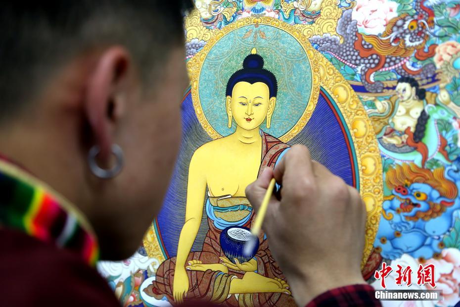 青海唐卡畫師展示“指尖”傳承