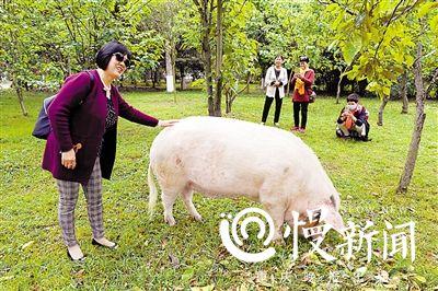 “來了來了!”一群大媽、大姐拿著手機(jī)迎了上去。一名小姑娘有些膽怯地靠近它,和它合影,拍完照片后激動(dòng)得大喊“好萌啊,豬堅(jiān)強(qiáng)!”