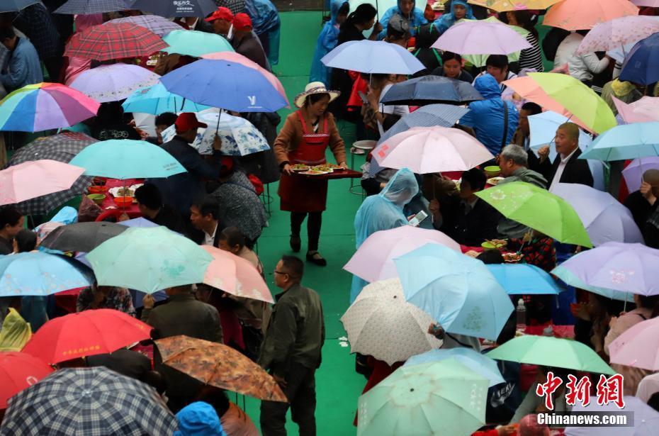 千人冒雨品嘗牡丹宴 “傘陣”林立五彩斑斕