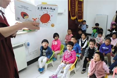 東城區(qū)第一圖書館東總布分館開展的兒童閱讀活動“天天故事會”現(xiàn)場,老師給小朋友們講繪本。新京報實習(xí)生陳婉婷攝