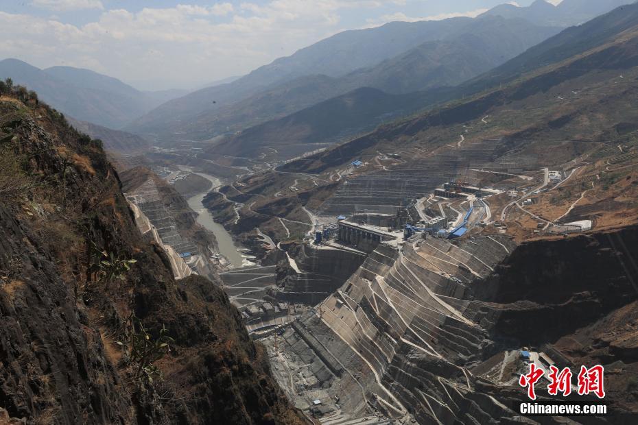 4月21日,云南省昭通市巧家縣大寨鎮(zhèn),正在建設中的白鶴灘水電站。中新社發(fā)張廣玉攝