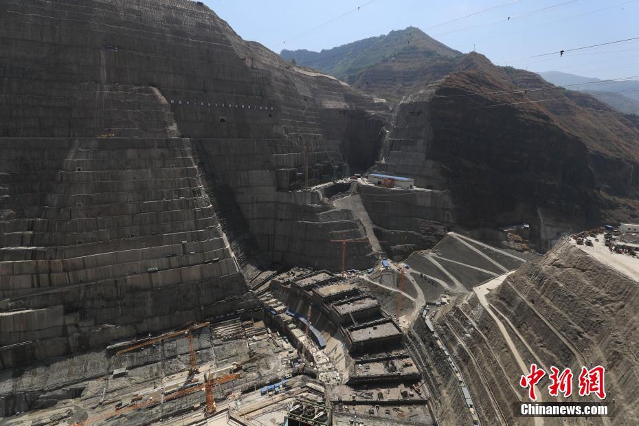 4月21日,云南省昭通市巧家縣大寨鎮(zhèn),正在建設(shè)中的白鶴灘水電站。中新社發(fā)張廣玉攝