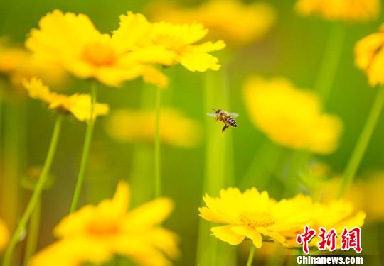 鄱陽湖畔金雞菊盛開 蜂飛蝶舞醉游人