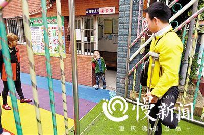到達(dá)幼兒園后,懂事的兒子揮手和陳超告別。