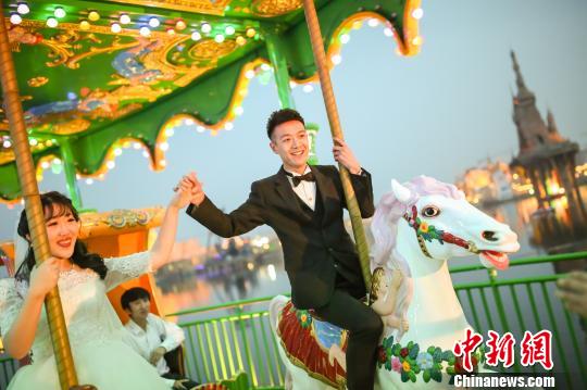 10對情侶在水上旋轉木馬體驗童話故事中的幸福生活?!⑽谋驍z