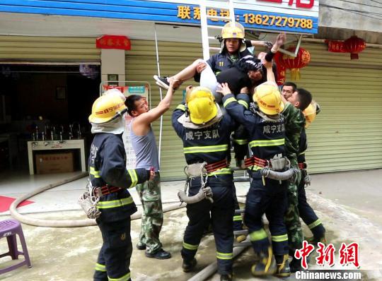 民房失火致孕婦被困 湖北咸寧消防營救