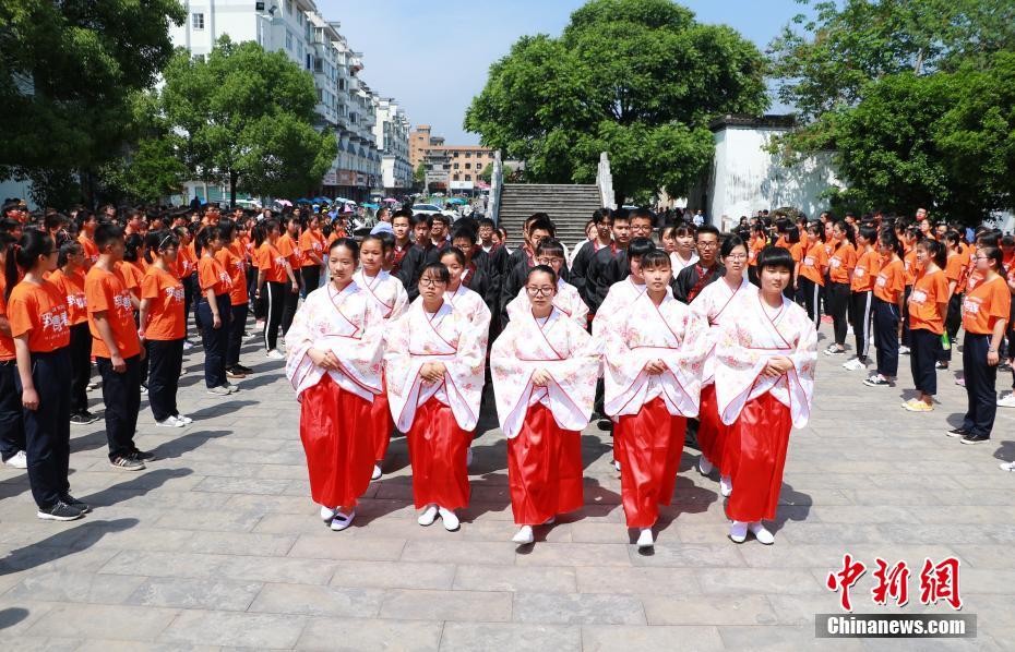 安徽休寧300中學(xué)生集體行漢式“成人禮”