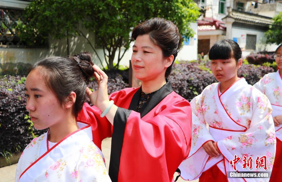 安徽休寧300中學(xué)生集體行漢式“成人禮”
