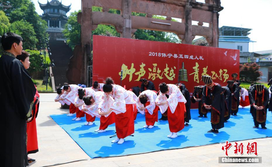 安徽休寧300中學(xué)生集體行漢式“成人禮”