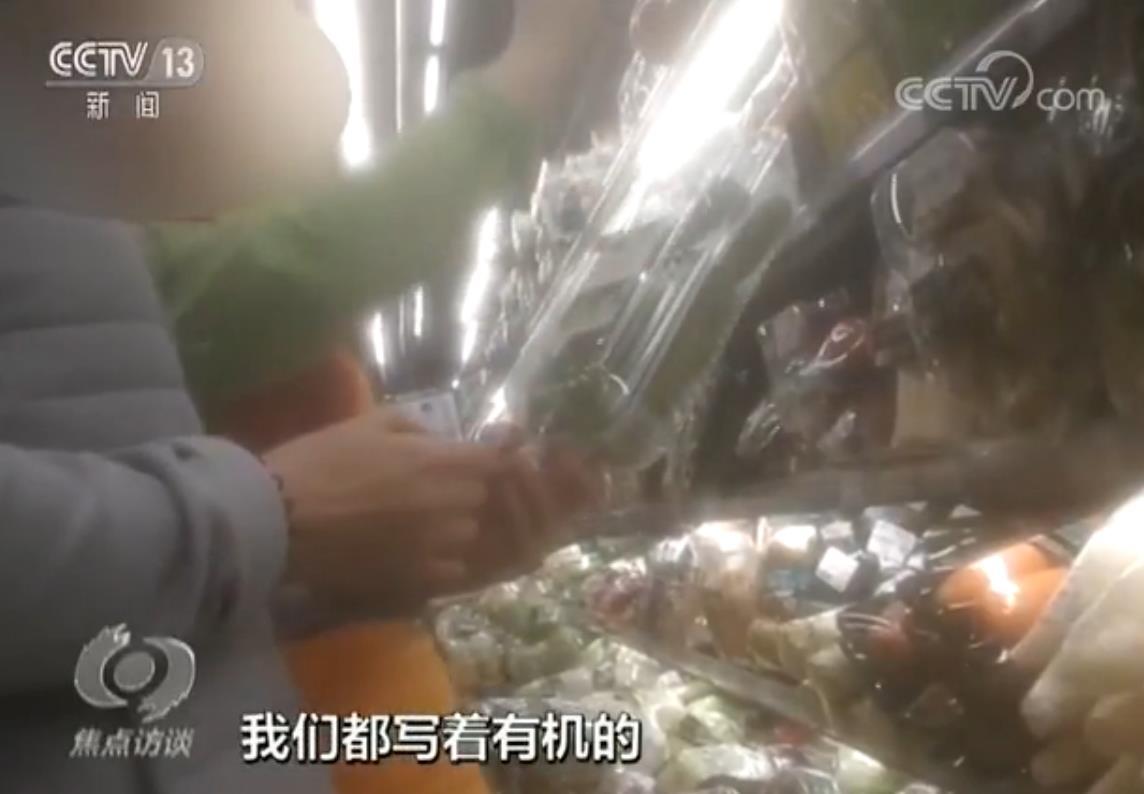 記者注意到,一排貨架的上方寫著“有機(jī)蔬菜”幾個(gè)字,但據(jù)了解,貨架上擺放的卻并非全都是有機(jī)菜,有的是無公害蔬菜。
