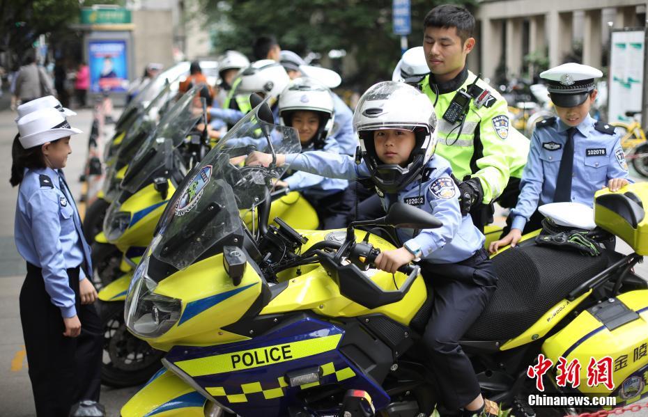 5月8日,南京少年交警隊(duì)長江路小學(xué)分隊(duì)正式成立,10名小交警走上護(hù)學(xué)崗,在南京交警在線主持人的帶領(lǐng)下維持校門口交通秩序,發(fā)放文明出行手繪書簽。當(dāng)日正值南京交警機(jī)動(dòng)大隊(duì)鐵騎中隊(duì)成立一周年,孩子們坐上巡邏摩托,體驗(yàn)騎警感受。中新社記者泱波攝