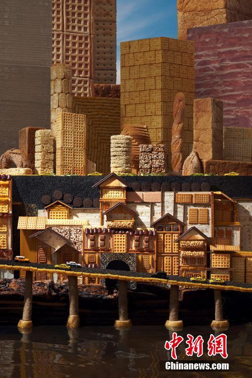 近日,重慶7名青年用9800種食材耗時一個半月時間造出當(dāng)?shù)?座網(wǎng)紅地標(biāo)建筑。“洪崖洞”、“重慶大劇院”、“長江索道”、“李子壩輕軌穿樓”、“解放碑”等網(wǎng)紅地標(biāo)建筑,通過面條、餅干、臘肉、辣椒、土豆、山藥、黑芝麻等傳統(tǒng)食材組裝而得以再次呈現(xiàn)。據(jù)了解,7位制作者是來自廣告界和美食攝影界的重慶本地人,他們用9800種食材,搭建6座重慶地標(biāo)建筑,是希望以一種浪漫又特別的方式去呈現(xiàn)他們眼中重慶的樣子,從而表達(dá)他們對這座土生土長城市的熱愛。圖為用食材造出的網(wǎng)紅地標(biāo)建筑“洪崖洞”。胡椒攝