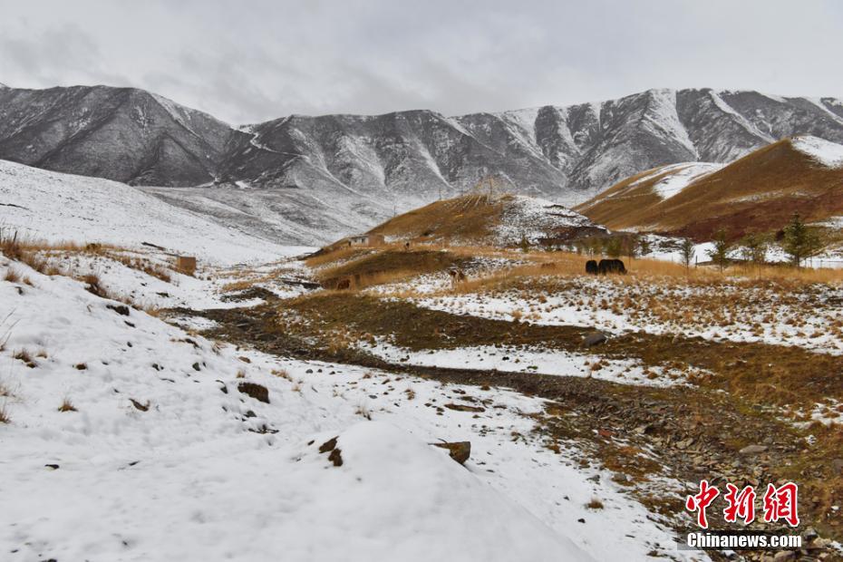 祁連山冬夏交織 山上白雪皚皚山下綠草如茵