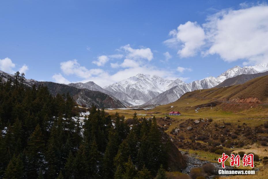 祁連山冬夏交織 山上白雪皚皚山下綠草如茵