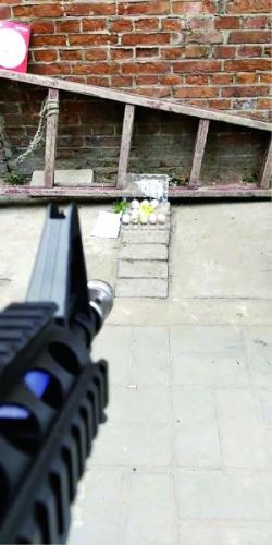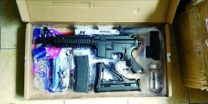 三天后,水彈槍快遞到貨。一個大盒子里,是需要簡單組裝的槍身和幾千發(fā)水彈,以及詳細(xì)的組裝說明書。記者注意到,無論是槍身還是說明書上都沒有明顯的廠商信息。簡單組裝后,這款電動、可以連發(fā)的玩具槍終于現(xiàn)身,組裝后長約30厘米,手感較重,槍上還帶有紅外線瞄準(zhǔn)。