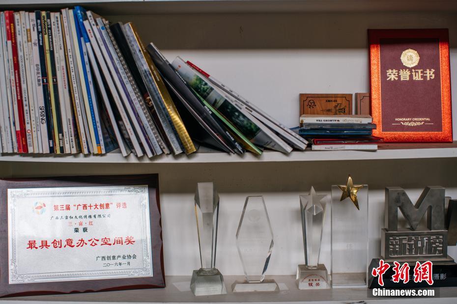徐小毛、歐陽丁華、韋寧三人別出心裁設計的車間,得到了外界的肯定。圖為該工作室得到的各類獎項。劉宇俊攝