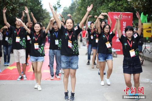 資料圖:2017年9月9日,南京農(nóng)業(yè)大學(xué)農(nóng)學(xué)院的學(xué)生用舞蹈迎接新生。中新社記者泱波攝