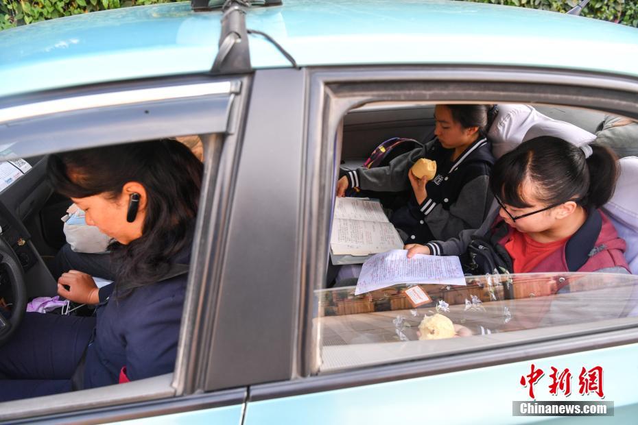 6月8日,考生在“愛心送考”車上復(fù)習(xí)。當(dāng)日,昆明“雷鋒出租汽車隊(duì)”在昆明第一中學(xué)西山學(xué)校門前等待參加2018年高考的學(xué)生,他們將免費(fèi)把學(xué)生送到各自的考場。據(jù)了解,該車隊(duì)已經(jīng)堅(jiān)持“愛心送考”15年不間斷。中新社記者任東攝