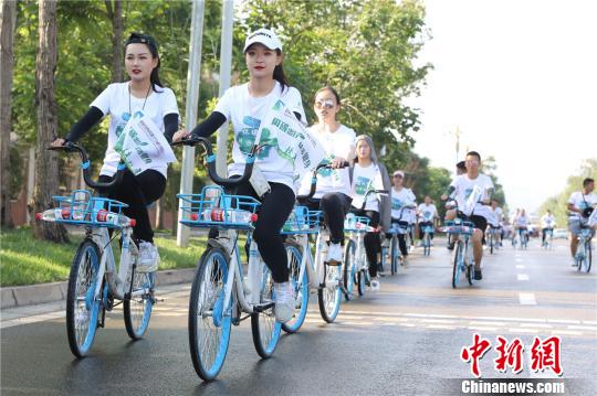 學(xué)生們騎著自行車走上環(huán)保“之路”?!∶缮健z