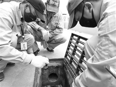 吳鐘林和同事在一處排水口找到老鼠的蹤跡