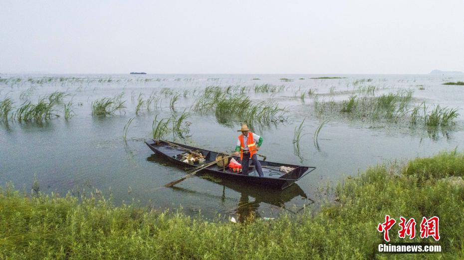 保潔人員對漂浮垃圾進(jìn)行清理,保護(hù)生態(tài)環(huán)境。傅建斌攝