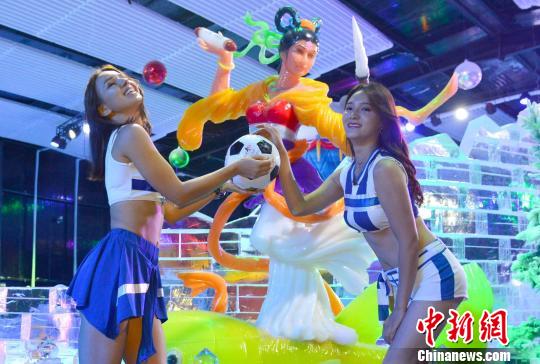 6月12日,“中國(guó)最美鄉(xiāng)村”江西婺源縣四名足球?qū)氊愒隗驇X景區(qū)冰雪館上演“足球秀”,冰雪清涼與足球激情演繹,感受鄉(xiāng)村夏季的魅力,喜迎2018俄羅斯世界杯。程新德攝