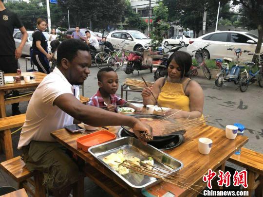 圖為喬丹一家正在吃“串串香”。 鐘欣攝