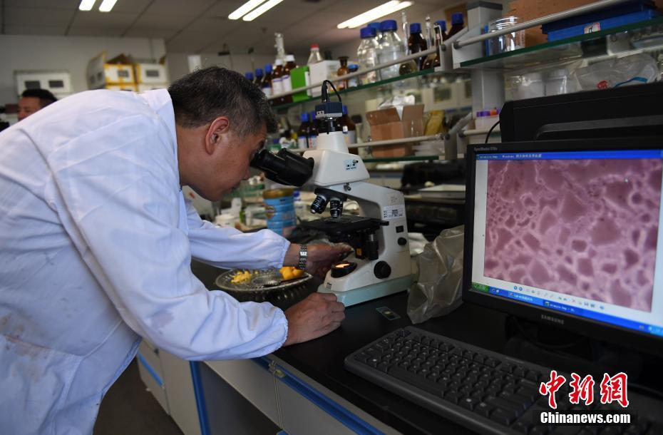 7月10日,浙江大學教授正在觀察面塊水洗后的結(jié)構(gòu)。當日,浙江大學與杭州市市場監(jiān)管局開展解剖黃鱔、對比不同類型蛋黃、水洗面團等實驗,破解黃鱔養(yǎng)殖中使用避孕藥、“兵乓球雞蛋”是假雞蛋、面條含有塑化劑和明膠的謠言。中新社記者王剛攝
