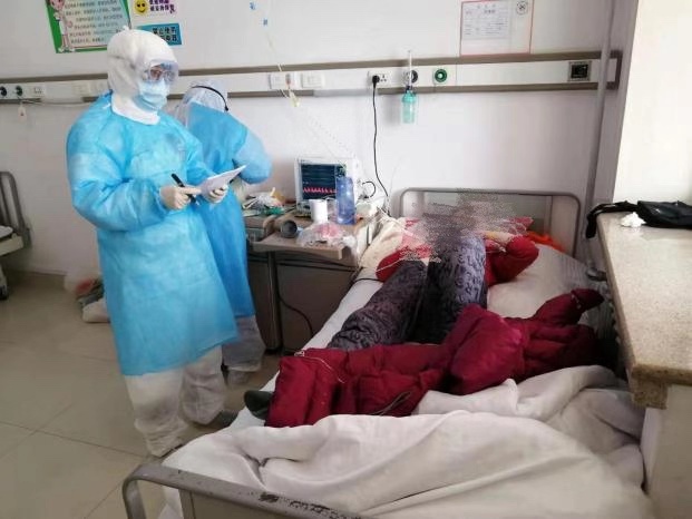 就這樣,我來不及收拾行囊、簡單帶了幾件生活用品,趕緊去參加院里召開的緊急會議,下午三點(diǎn),由王政院長親自帶隊(duì)、我們五名醫(yī)生、五名護(hù)士組成的醫(yī)療隊(duì)立即從黑龍江省醫(yī)院出發(fā),驅(qū)車火速趕往確診病例集中的綏化市第一醫(yī)院。晚上6點(diǎn)左右正式到達(dá)綏化市第一醫(yī)院的綜合大樓門前。因疫情嚴(yán)峻,我們醫(yī)療隊(duì)爭分奪秒的要了解確診患者的病情,沒時間去住宿的地方,隨身帶的行李就放在車上,第一時間我們就和這里一線的醫(yī)務(wù)人員及院領(lǐng)導(dǎo)對接、緊急開會。當(dāng)天晚上的會議一直持續(xù)到第二天凌晨,我們初步了解了重癥患者的病情,同時緊急布置了接下來的工作內(nèi)容。