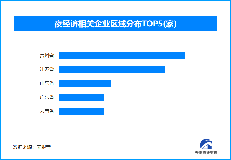 從區(qū)域分布來看,貴州省、江蘇省、山東省夜經(jīng)濟(jì)相關(guān)企業(yè)數(shù)量位居前列,分別為超20.3萬余家、17.1萬余家和8.3萬余家。
