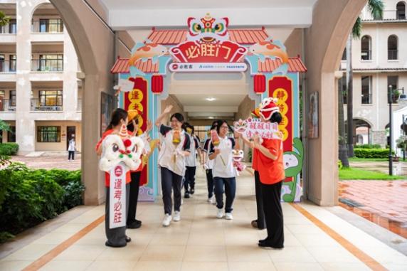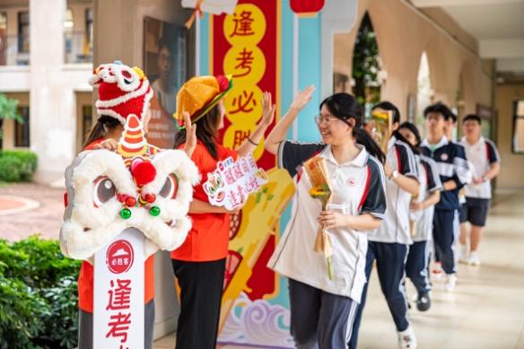 在中、高考即將拉開帷幕之際,華南必勝客與佛山卓遠(yuǎn)未來實(shí)驗(yàn)學(xué)校共同為考生們精心籌備了一場(chǎng)蘊(yùn)含深厚寓意與誠(chéng)摯祝福的“醒獅祈愿”。作為佛山當(dāng)?shù)貥O具代表性的傳統(tǒng)民俗文化,醒獅象征著吉祥、勇猛與活力,可為即將踏上考場(chǎng)的考生們注入力量與勇氣。老師和必勝客員工們手持寫有“醒醒目目,逢考必勝”的醒獅頭以及各種祝福話語的條幅,夾道為考生加油助威,考生們穿過醒獅“必勝門”寓意著能夠在考場(chǎng)上脫穎而出,蟾宮折桂。一聲聲鏗鏘有力的吶喊,一句句真摯熱切的祝福,讓現(xiàn)場(chǎng)氣氛達(dá)到高潮。