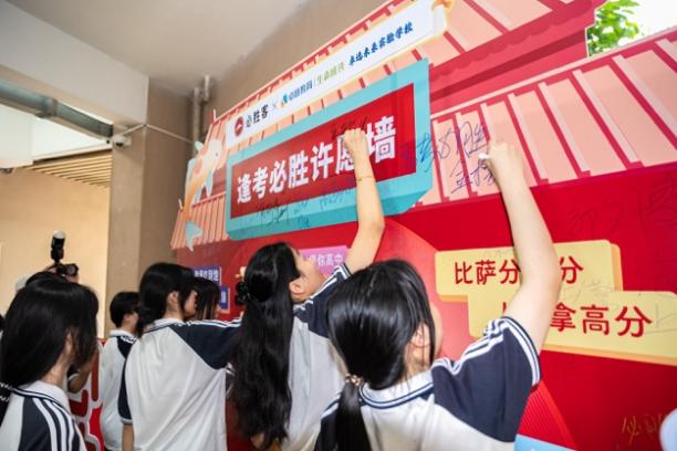 “醒獅是佛山的文化瑰寶,它的精神與我們對(duì)考生的期望不謀而合。希望同學(xué)們能夠像醒獅一樣,在考場(chǎng)上保持清醒的頭腦,展現(xiàn)出昂揚(yáng)的斗志,取得優(yōu)異的成績(jī)。”卓遠(yuǎn)學(xué)校老師表示??忌鷤儊淼骄牟贾玫摹胺昕急貏佟痹S愿墻前,認(rèn)真地將自己的考試愿望寫在墻上:“希望高考超常發(fā)揮,被心儀大學(xué)錄取”“逢考必勝堡我高中”……這些心愿將激勵(lì)他們以必勝的信念迎接人生“大考”。