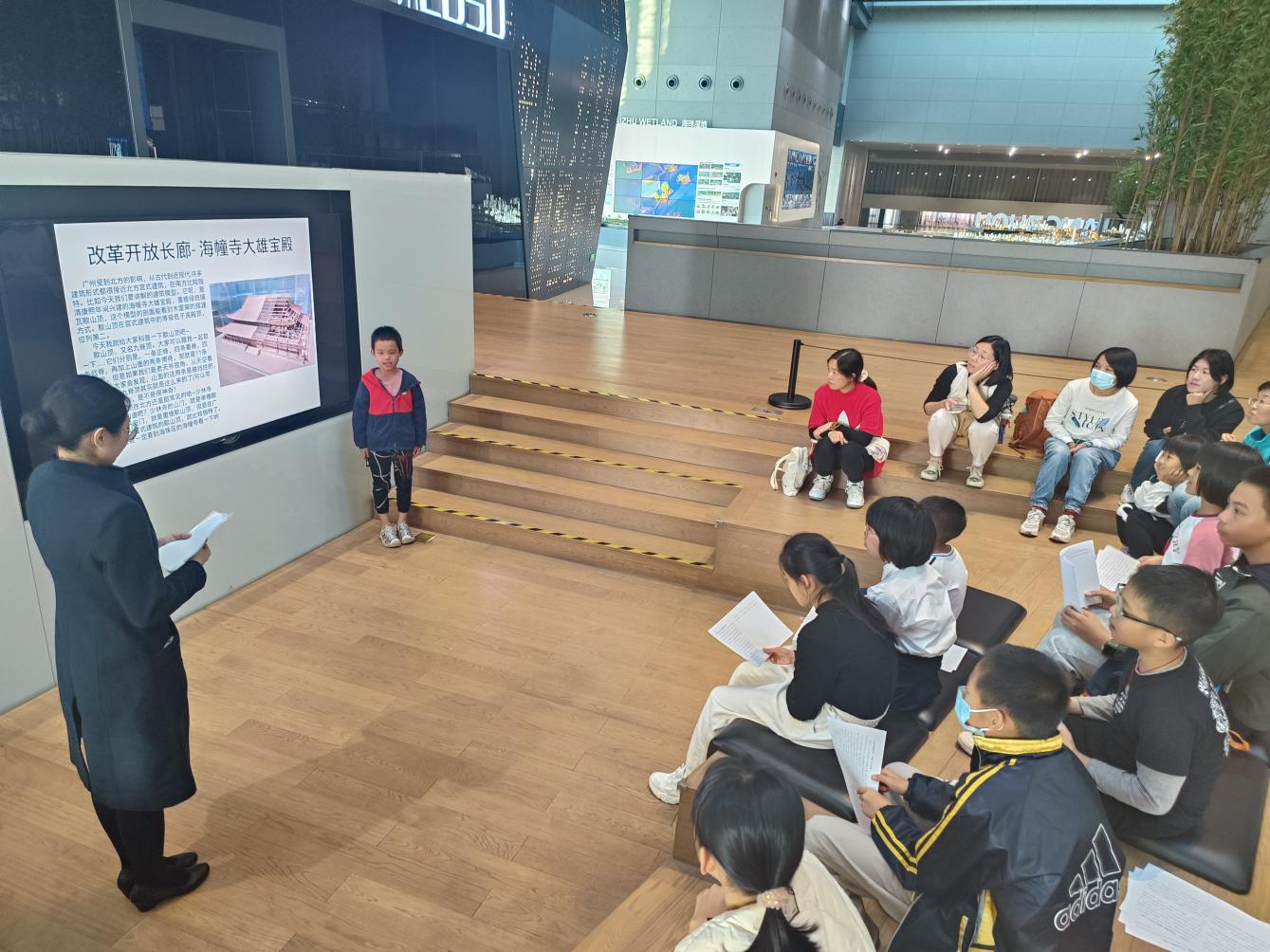 隨后,培訓轉入講解實操。在廣式彩色玻璃窗等展品前,志愿講解員們反復打磨講解姿態(tài)、細致調整語言節(jié)奏。他們專注的身影,成為展館內一道流動的風景線。以“南沙如何從小漁村蛻變?yōu)闉硡^(qū)樞紐?”為切入點,授課老師帶領志愿講解員們了解廣州南沙的發(fā)展密碼,并圍繞“如何向青少年講解規(guī)劃知識”等話題開展討論,將規(guī)劃理念轉化為生動易懂的講解內容。