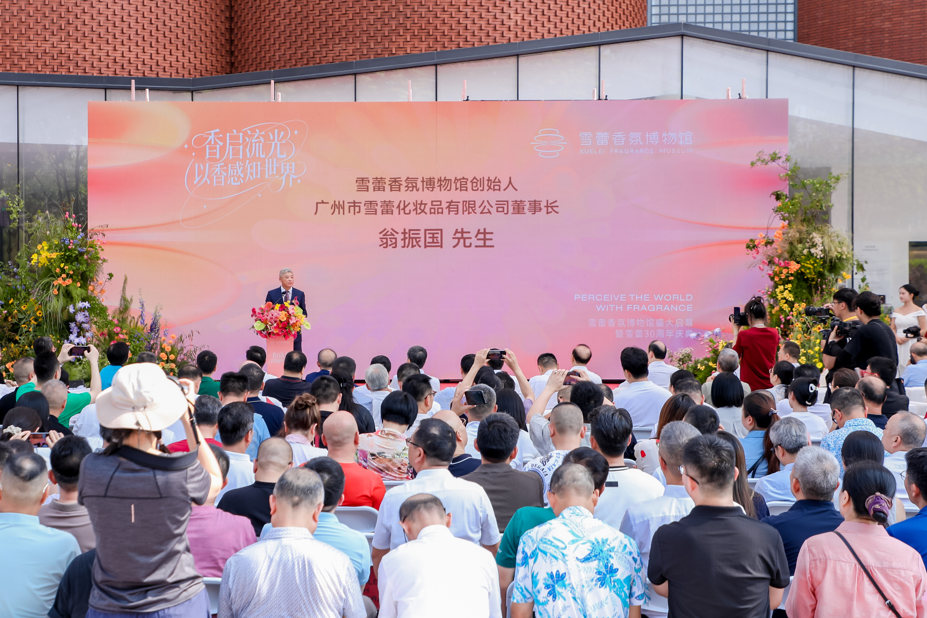 活動現(xiàn)場,雪蕾董事長、博物館創(chuàng)始人翁振國對各位嘉賓的到來表示熱烈的歡迎,深情回顧企業(yè)三十載征程,表達了對政府、團隊與合作伙伴的感謝,并展望香氛文化在中國的發(fā)展前景以及博物館所承載的意義與價值。
