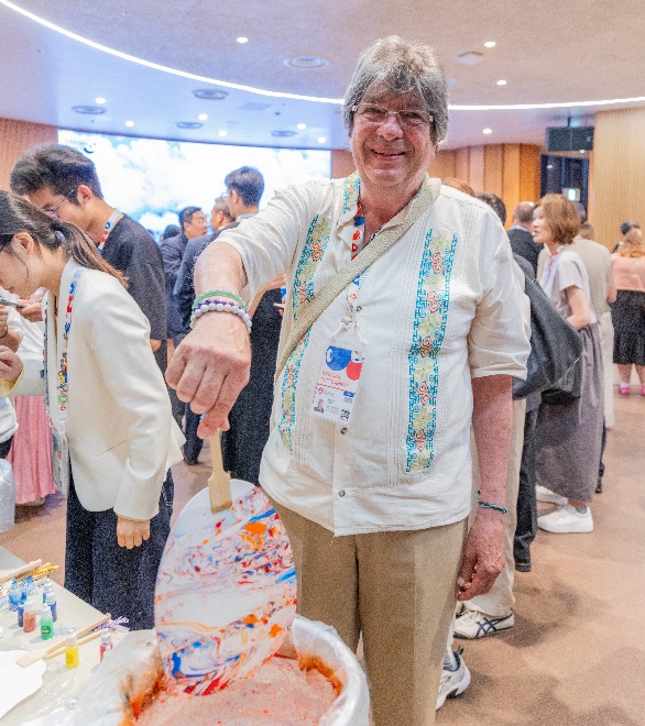 為了讓嘉賓更深入感受東方生活的雅趣,現(xiàn)場(chǎng)特別設(shè)置了中國(guó)非遺漆扇制作體驗(yàn)區(qū)。漆扇作為中國(guó)傳統(tǒng)手工藝品,通過漂漆技藝讓彩漆在水面自然流淌,并定格于扇面上,形成獨(dú)一無二的紋樣與色彩?,F(xiàn)場(chǎng)嘉賓紛紛動(dòng)手參與,制作屬于自己的中國(guó)風(fēng)扇子,留下了一份珍貴的文化記憶。