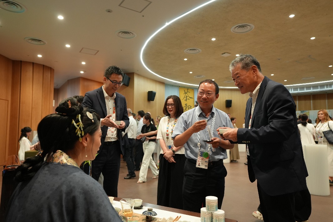 2025年7月22日,由中國(guó)駐大阪旅游辦事處主辦的“茶和天下?雅集”活動(dòng)在大阪世博會(huì)中國(guó)館成功舉辦。來自30多個(gè)國(guó)家館、主題館和世博會(huì)協(xié)會(huì)各部門的近80名嘉賓齊聚一堂,包括英國(guó)、匈牙利、澳大利亞等多國(guó)的政府總代表,以及多個(gè)國(guó)家館館長(zhǎng)。嘉賓們?cè)诓柘闼囊绲姆諊谐两襟w驗(yàn)中國(guó)茶文化與東方美學(xué),感受中國(guó)茶的獨(dú)特魅力與深厚底蘊(yùn),共赴這場(chǎng)別開生面的文化交流盛會(huì)。