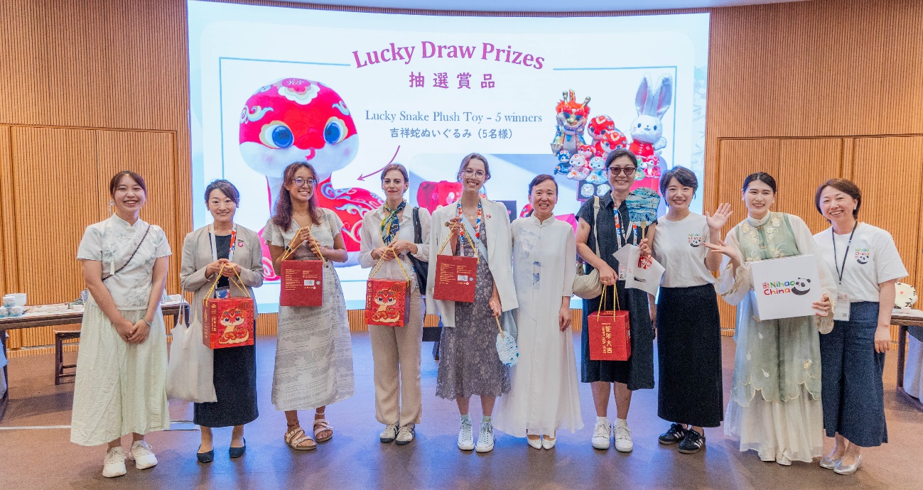 幸運(yùn)抽獎(jiǎng)環(huán)節(jié)將現(xiàn)場(chǎng)氣氛推向高潮。印有中國(guó)國(guó)家旅游宣傳形象“你好?中國(guó)”的精美茶具套裝、熊貓毛絨玩具、“茶和天下”限定甄選茶葉及吉祥蛇玩偶令嘉賓期待滿滿,現(xiàn)場(chǎng)笑語(yǔ)不斷,氣氛熱烈歡騰。