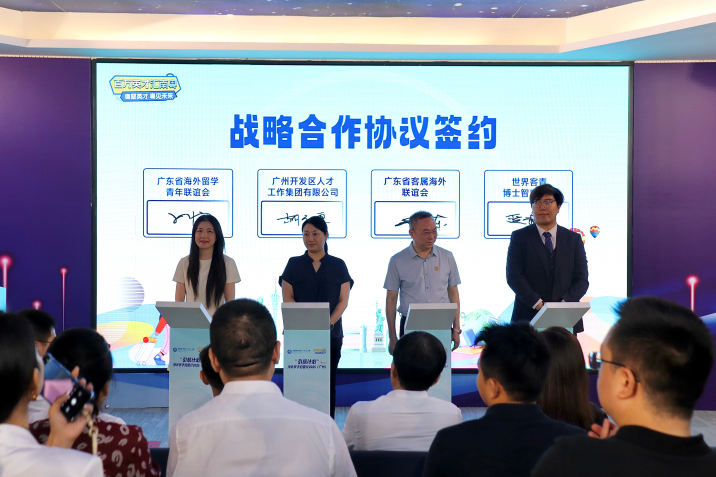 廣州開發(fā)區(qū)人才工作集團(tuán)有限公司代表、廣東省海外留學(xué)青年聯(lián)誼會副會長張書彥、廣東省客屬海外聯(lián)誼會執(zhí)行會長鐘聞東及世界客青博士智庫聯(lián)盟優(yōu)秀博士代表賈楠共同簽署多項(xiàng)戰(zhàn)略合作協(xié)議,進(jìn)一步拓展海外引才渠道、深化產(chǎn)學(xué)研協(xié)同。