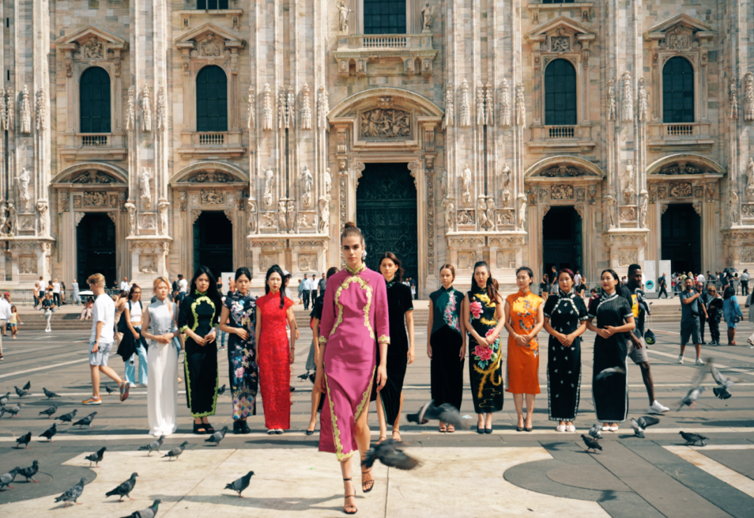 端莊典雅的非遺手繡長裙、仙氣飄飄的二十四節(jié)氣時(shí)令服、光澤亮麗的水生木旗袍……意大利米蘭大教堂前中心廣場上、米蘭理工大學(xué)校園內(nèi),充滿中國傳統(tǒng)文化元素的服飾,在不同膚色的模特身上綻放出別樣的華彩爛漫!