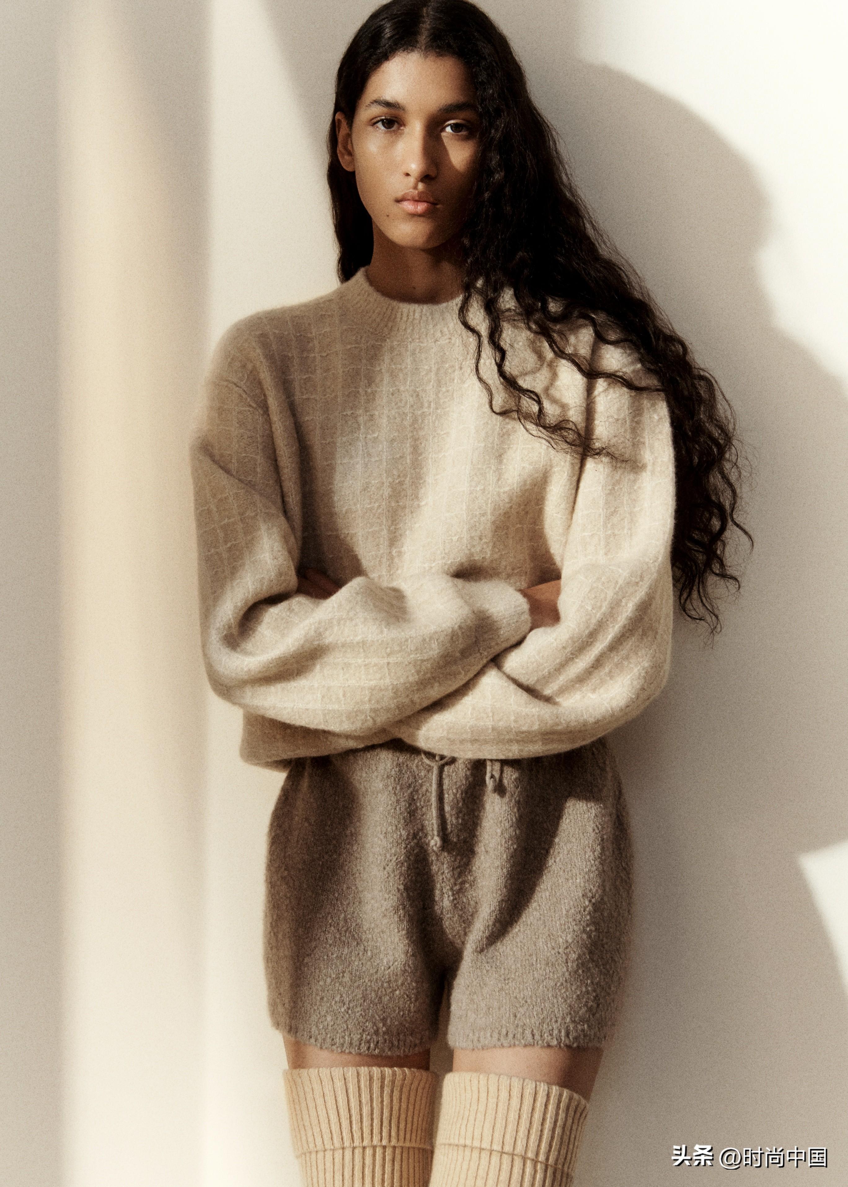 Cocooning女裝系列從珍貴的羊絨針織布打造的騎行褲到毛圈花式線Fuzzy Silk纖維打造的其他款式,均采用亮麗的奶油色,風(fēng)格和諧統(tǒng)一。