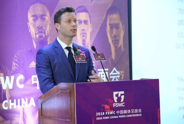2018年5月17日,2018F5WC五人足球世界冠軍賽中國媒體見面會在北京正式舉行。F5WC主席詹姆士(James Davies Yandle)、賽事推廣大使之一意大利國腳馬特拉齊、中國關(guān)心下一代健康體育基金會秘書長孫建新、上海市足球協(xié)會主席朱廣滬等相關(guān)領(lǐng)導(dǎo),前國腳中國足協(xié)發(fā)展基金會名宿團劉利福,賽事主辦方北京綠茵五人足球運動發(fā)展中心總經(jīng)理杜藝、乾途體育總經(jīng)理鄭陽及2018F5WC各省賽區(qū)代表出席了本次活動。