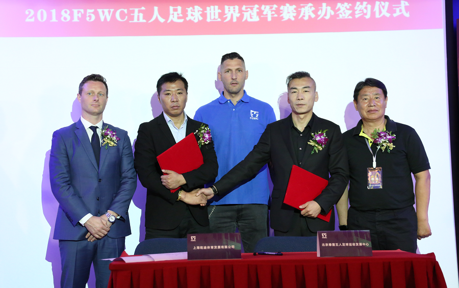 一場成功的國際賽事離不開高超的競技水平、高尚的體育素養(yǎng)和成功的賽事運營,上海市承辦2018F5WC中國區(qū)總決賽及世界總決賽,上海乾途體育發(fā)展有限公司作為地方承辦單位也付出了辛勤的努力。在F5WC主席詹姆士先生、上海足協(xié)朱廣滬主席、綠茵工程李巖副主任、F5WC國際推廣大使馬特拉齊先生、中國足球名宿劉利福先生等相關(guān)人士的見證下,賽事主辦方北京綠茵五人足球運動發(fā)展中心總經(jīng)理杜藝與承辦單位上海乾途體育發(fā)展有限公司總經(jīng)理鄭陽在現(xiàn)場正式簽署承辦協(xié)議。