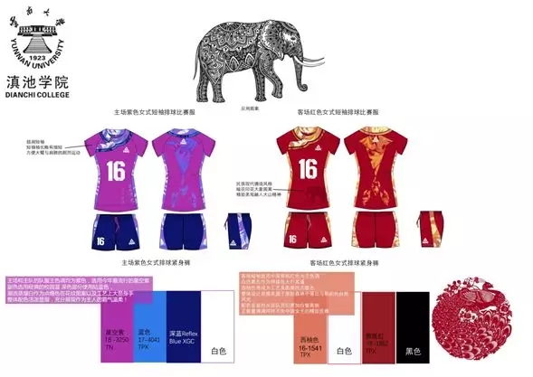 云南是我一輩子向往的地方,最喜歡的地方。云南女排也是我最喜歡的球隊(duì),當(dāng)?shù)弥梢詾樽约鹤钕矚g的球隊(duì)設(shè)計(jì)比賽服裝時(shí),我毫不猶豫參加了本次隊(duì)服設(shè)計(jì)征集活動(dòng),并且拿出了我最為滿意的設(shè)計(jì)作品。