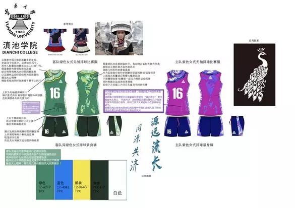 不管是生活在原始森林的孔雀大象還是我心心向往的朝陽(yáng)落日星辰都是我的靈感所在。又將云南少數(shù)民族人數(shù)之首的彝族的傳統(tǒng)民族服飾與運(yùn)動(dòng)裝的功能性結(jié)合。希望矯健又美麗的云南女排穿上我設(shè)計(jì)的比賽服用功能性保護(hù)運(yùn)動(dòng)員免受劇烈運(yùn)動(dòng)帶來(lái)的傷害而且希望漂亮又有特色的服裝可以增加運(yùn)動(dòng)員的熱情和信心,在賽場(chǎng)上大顯身手!