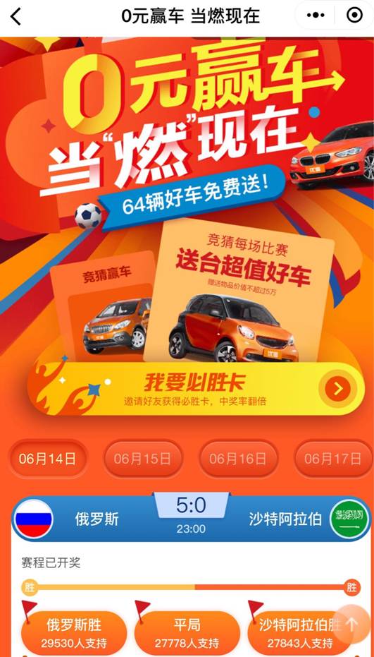 俄羅斯世界杯火熱開賽,優(yōu)信競(jìng)猜贏車開局紅火