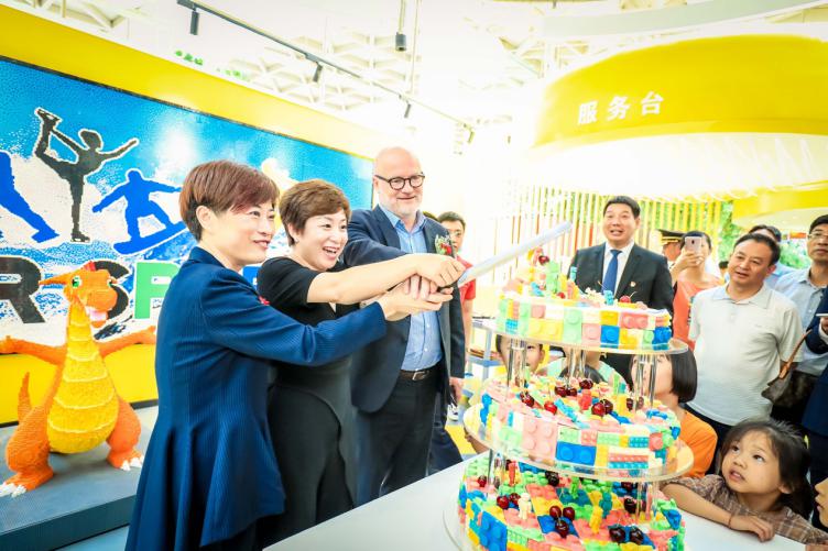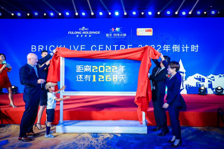 BRICKLIVE品牌創(chuàng)始人Clive Morton先生、奧運(yùn)冠軍郭丹丹女士與富龍控股黨委書記、董事長(zhǎng)王誠(chéng)先生慶祝冰雪主題磚享樂園開園