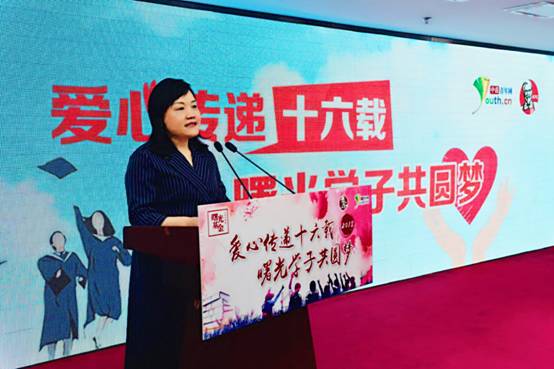 “曙光基金不僅照亮了我的路,更讓我成為一道曙光,去照亮更多人的路?!?月10日,由中國青年網(wǎng)和百勝中國共同舉辦的“愛心傳遞十六載曙光學(xué)子共圓夢”·肯德基曙光基金優(yōu)秀學(xué)子頒獎典禮上,獲獎學(xué)子代表之一宋會濤這樣總結(jié)自己的收獲。中國青年網(wǎng)副總經(jīng)理繆晨琦,中國志愿服務(wù)聯(lián)合會研究會副秘書長、中國青年志愿者協(xié)會副秘書長張俊虎,百勝中國首席公共事務(wù)官王立志,北京肯德基總經(jīng)理趙莉等出席此次活動。
