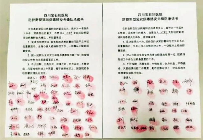 1月28日下午6點,四川寶石花醫(yī)院來自臨床、醫(yī)技、行政、后勤各崗位的450名黨員、群眾紛紛在“請戰(zhàn)書”上鄭重簽下自己的名字,自愿加入到四川寶石花醫(yī)院防控新冠肺炎先鋒隊。全院989名員工,有一半人員報名參與。