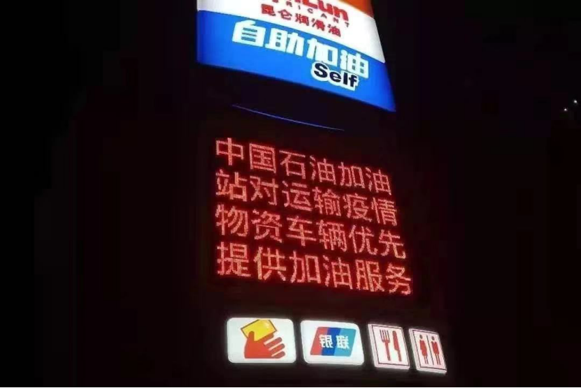 春節(jié)期間,中國石油在湖北850座所屬加油站24小時營業(yè),開通保供綠色通道,保障疫情救護車輛、物資運輸車輛快速加油,同時積極協(xié)助保供車輛辦理通行手續(xù),湖北地區(qū)日均零售成品油4422噸,其中汽油4070噸、柴油352噸。優(yōu)化車輛運營節(jié)奏,增加進鄂油品運力,協(xié)調(diào)公路增加出庫6600余噸,向孝感、隨州地區(qū)補充汽油資源2700余噸,近日日均向湖北配送成品油5295噸;調(diào)派3臺油罐車執(zhí)行雷神山、火神山醫(yī)院搶建工程油品配送工作,其中28日配送柴油300噸。